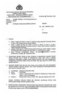 Sesuai dengan Laporan Polisi nomor : LP/B/750/XII/SPKT/Polda Jawa Timur tertanggal 02 Desember 2024 dengan nama pelapor Ir Yuliatin Ali,S,MM atas kasus pelanggaran pidana dugaan penggelapan dana koperasi UPN Veteran,penyidik sampai per 04 Februari 2025 telah melakukan pemanggilan dan pemeriksaan kepada 67 Dosen/PNS Kampus UPN Veteran Surabaya.