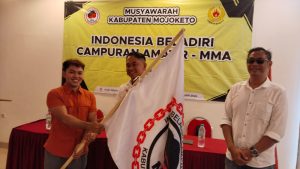 MOJOKERTO – TBN |, Jumat 21-02-2025, Pengkab IBCA-MMA Kabupaten Mojokerto menggelar Muskab IBCA-MMA di Hotel Puri Indah. Hadir dalam acara tersebut, Ansori Sekum IBCA-MMA Provinsi Jawa Timur, Imam Suyono Ketum dan Kasiono Sekum KONI Kabupaten Mojokerto serta 3 Club MMA, Rajawali, Scorpio, Mayangkara juga pengurus lainnya.