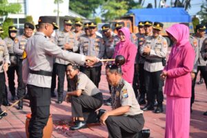 Dua personel teladan, Aiptu Ponco Esti dan Aiptu Umar, resmi menyandang pangkat baru sebagai Inspektur Polisi Dua (Ipda) terhitung mulai 1 Mei 2025. Kenaikan pangkat tersebut bukanlah hadiah biasa, melainkan bentuk penghargaan atas pengabdian tanpa cela dan komitmen tinggi mereka dalam menjalankan tugas negara.